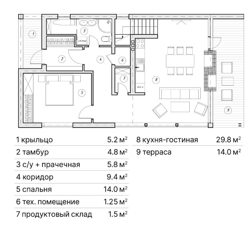 • Благодаря панорамным окнам в помещениях будет много света. За безопасность можно не волноваться, так как стекла противоударные.